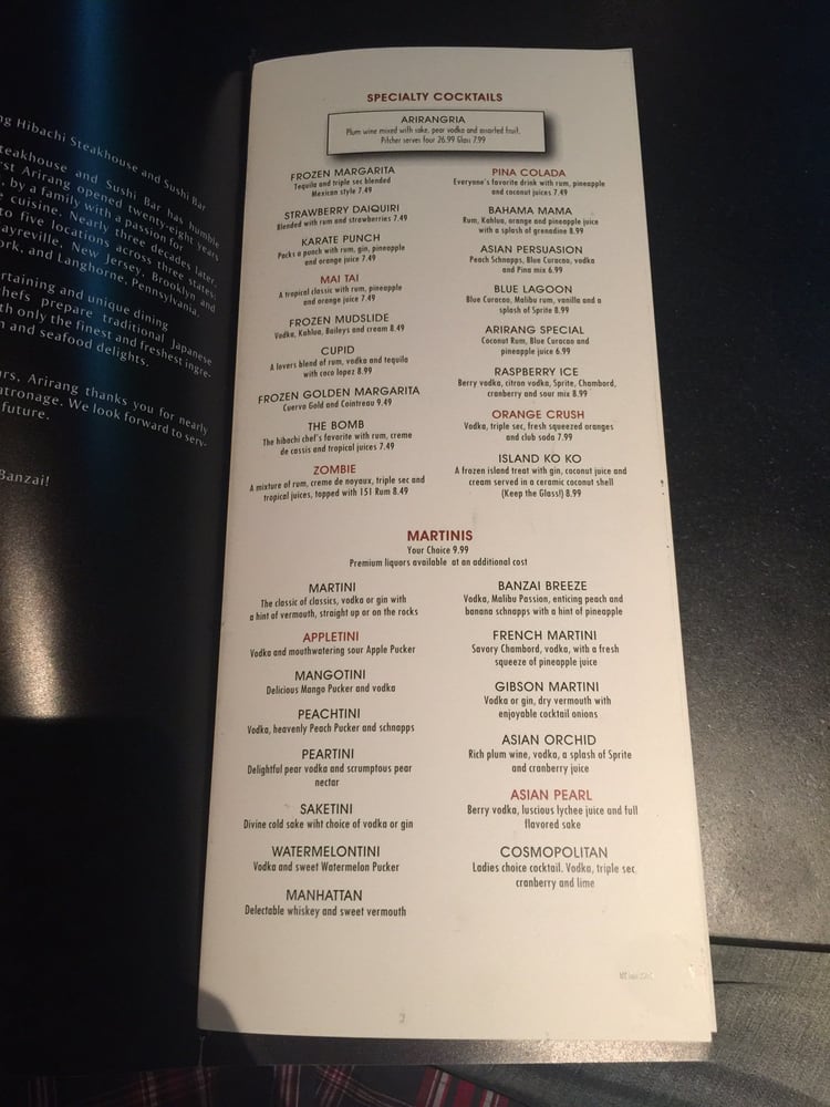 Arirang Hibachi Steakhouse Menu (2025 Update)